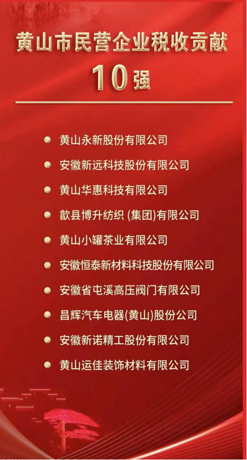 其中,主營粉末涂料固化劑的高新技術(shù)企業(yè)黃山華惠科技有限公司(下稱“華惠公司”)憑借2022年度創(chuàng)新高質(zhì)量發(fā)展及為地方經(jīng)濟作出的突出貢獻,同時獲得“黃山市民營企業(yè)稅收貢獻10強,“專精特新”企業(yè)10強”2項榮譽。