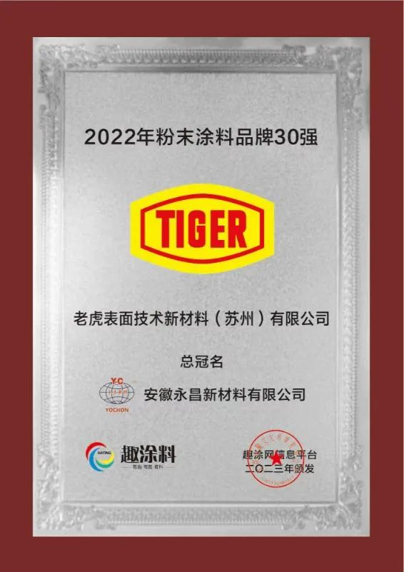 趣涂料(趣涂網(wǎng))資料顯示,老虎是表面處理行業(yè)的領(lǐng)軍企業(yè),1930年成立于奧地利,專注于創(chuàng)新涂飾解決方案90余年,在全球都有很大的影響,正式進(jìn)入中國市場后為中國涂裝行業(yè)的發(fā)展做出了卓越的貢獻(xiàn),是2022年粉末涂料品牌30強(qiáng)企業(yè)之一。