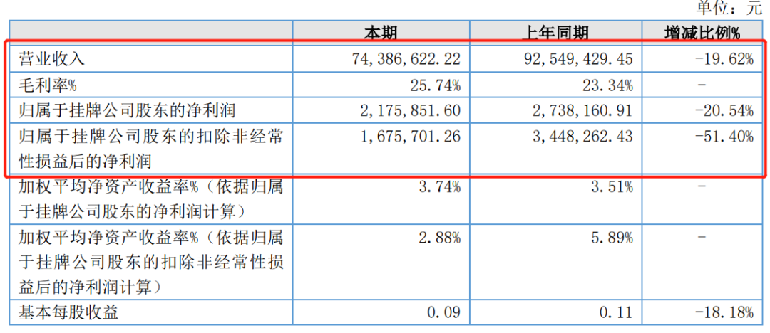 年報(bào)顯示,科網(wǎng)股份2022年實(shí)現(xiàn)營(yíng)業(yè)收入7438.66萬(wàn)元,同比上一年9254.94萬(wàn)元,下滑19.62%;實(shí)現(xiàn)歸屬于掛牌公司股東的凈利潤(rùn)217.59萬(wàn)元,同比上一年273.82萬(wàn)元,下滑20.54%;實(shí)現(xiàn)扣非后凈利潤(rùn)167.57萬(wàn)元,同比上一年344.83萬(wàn)元,下滑51.4%。