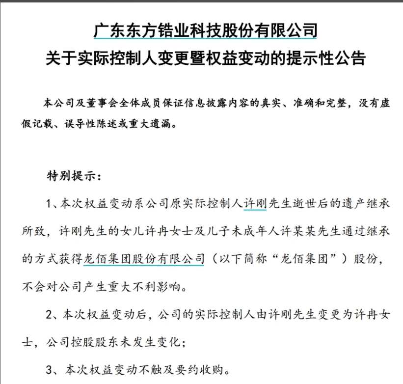 龍佰集團(tuán)表示,鑒于許某某系未成年人,他的母親王霞女士系其法定監(jiān)護(hù)人,故許某某因法定繼承取得的上述龍佰集團(tuán)股份所對應(yīng)的一切權(quán)利,均依法由王霞代為行使,并登記在王霞名下。