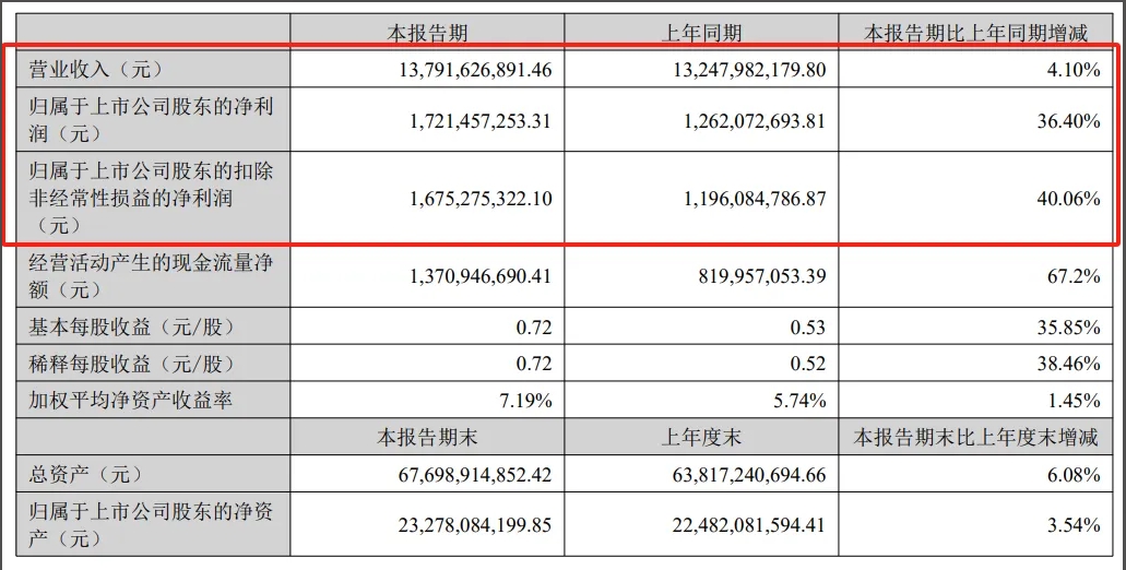 趣涂料(趣涂網(wǎng))了解到,8月29日,龍佰集團(tuán)發(fā)布半年報(bào)指出,2024年上半年,公司實(shí)現(xiàn)營(yíng)收137.92億元,同比增長(zhǎng)4.1%;凈利潤(rùn)17.21億元,同比增長(zhǎng)36.4%;利潤(rùn)總額21.14億元,同比增長(zhǎng)34.96%;基本每股收益0.72元,同比增長(zhǎng)35.85%。